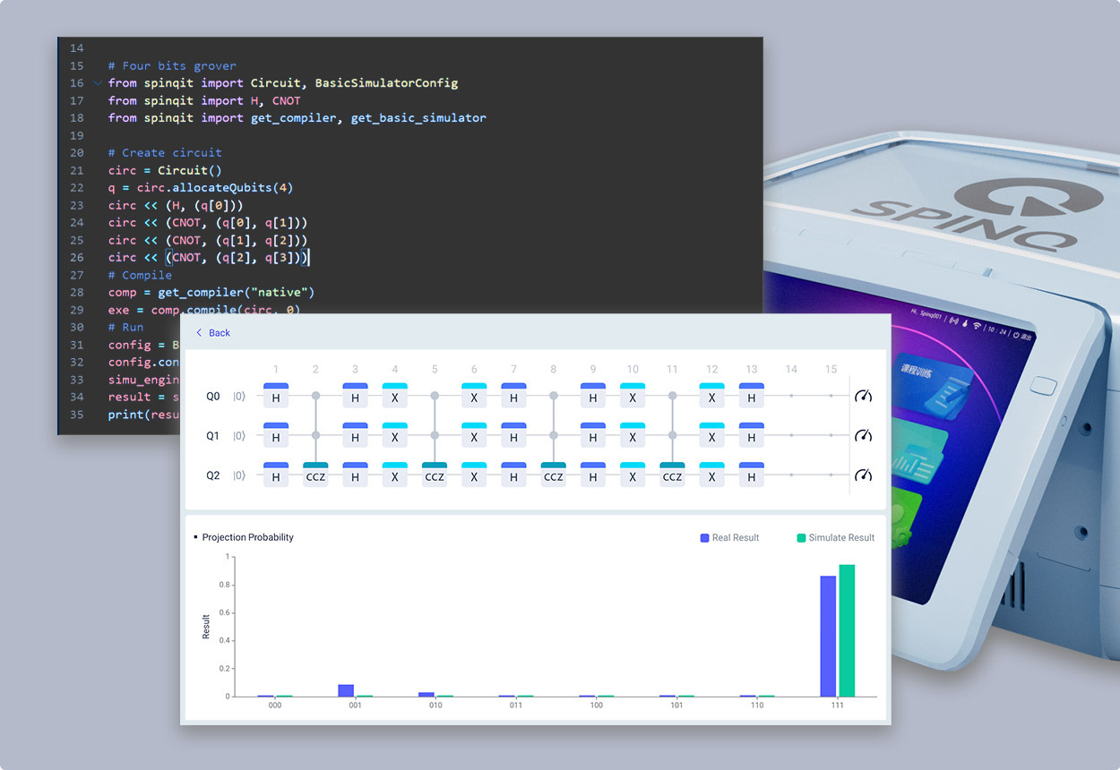 Connects seamlessly with SpinQit, SpinQ’s custom software toolkit, enabling diverse quantum programming applications.
